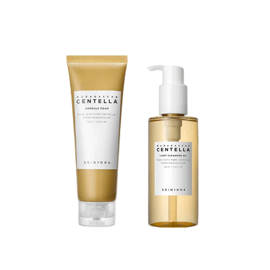 Experience the ultimate Korean skincare cleansing routine with the SKIN1004 Madagascar Centella Double Cleansing Duo Set. This powerful two-step korean beauty products set combines a lightweight cleansing oil (120ML) and rich foaming cleanser (250ML) to effectively remove makeup, dirt, and impurities while soothing sensitive skin. Formulated with Madagascar Centella Asiatica Extract and nourishing botanical oils, this korean skincare brands duo delivers deep cleansing without stripping your skin’s natural moisture barrier. Perfect for those seeking gentle yet effective k beauty products that calm, hydrate, and provide mild exfoliation for a refreshed, balanced complexion.